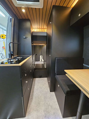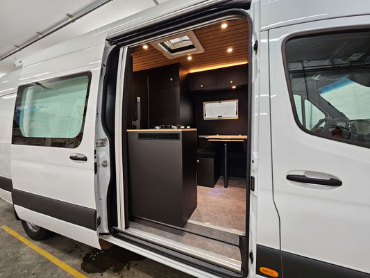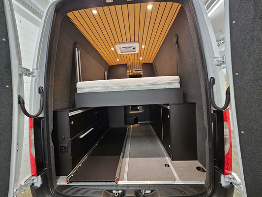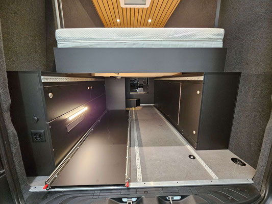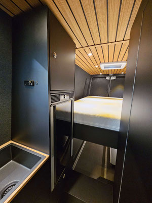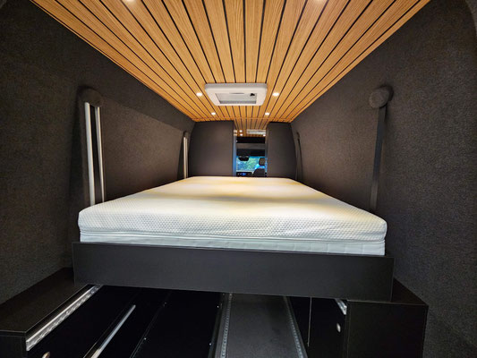 Motorradcamper mit elektrischem Hubbett